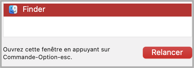 Si cette ligne est grisée, pensez à relancer le Finder "Forcer à quitter".