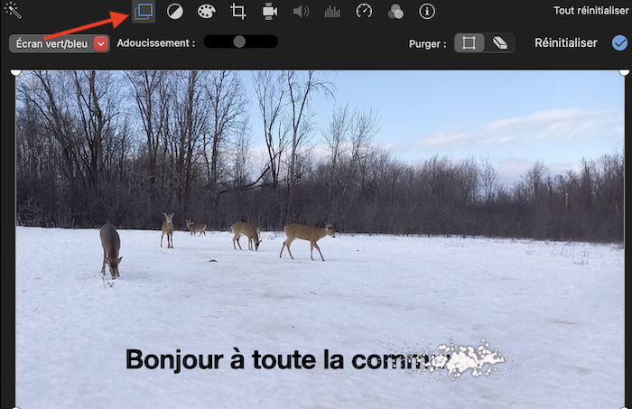Ensuite vous réimportez le fichier sur iMovie et vous ajoutez un autre effet "fond vert".