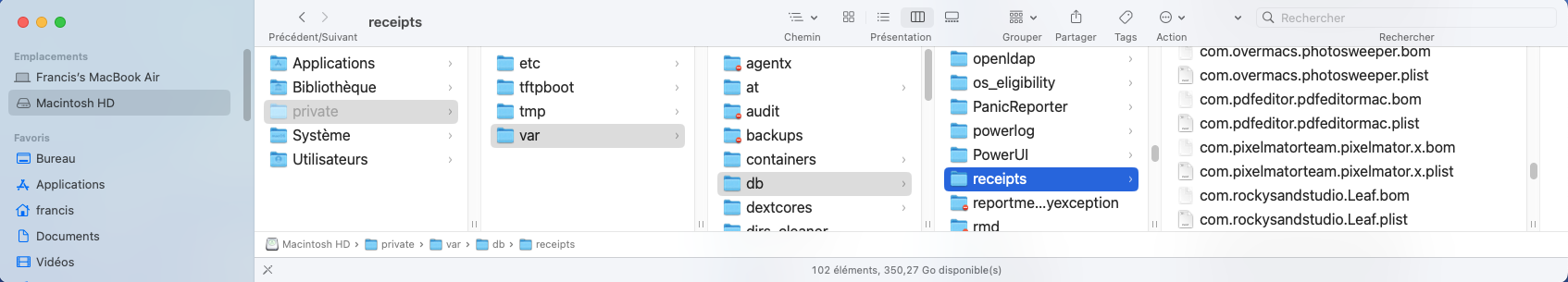 puis dans la zone prévue pour tapez : /private/var/db/receipts