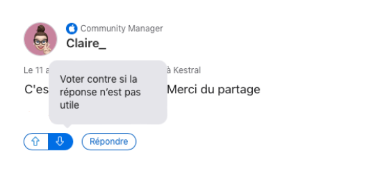 Ce type de vote permet d’indiquer que le contenu est utile, et sera mis en avant comme une ‘meilleure réponse’.