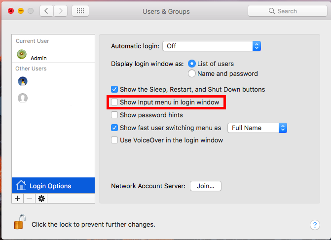 6. Sélectionnez l’option Afficher le menu Saisie dans la fenêtre d’ouverture de session