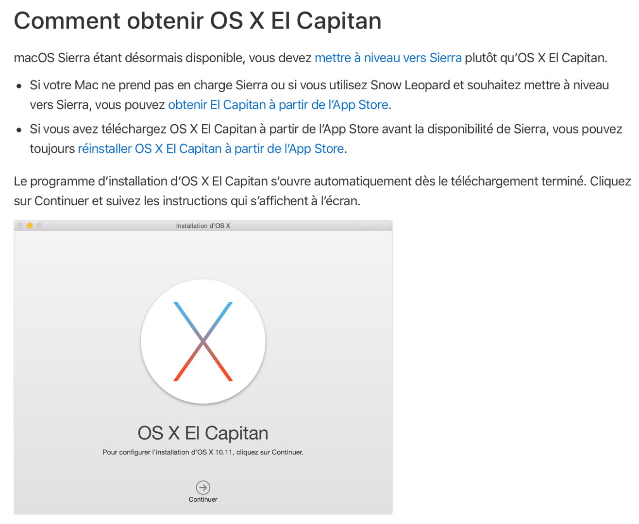 Ensuite tu peux aller sur cet article et cliquer sur le lien bleu pour "obtenir El Capitan à partir de l'App Store": Mise à niveau vers OS X El Capitan - Assistance Apple