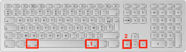 il y a la touche "cmd" + une sorte de flèche (droite et gauche)