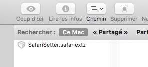 il faut éliminer l'installateur dénommé SafariSetter.safariextz.