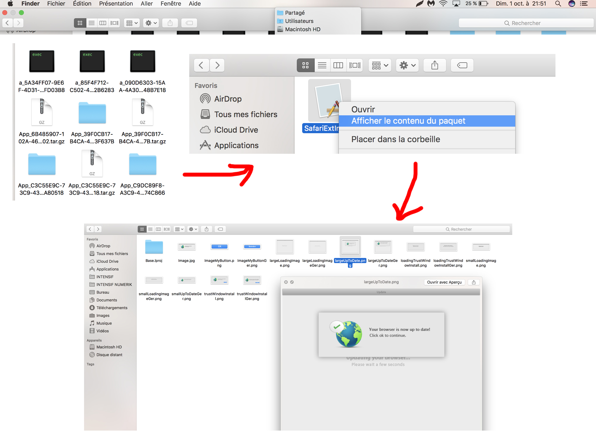 Pourquoi mon navigateur safari m'affiche depuis quelques temps le message "Optimisation de votre browser, cliquer sur OK pour terminer", cette fenêtre pas très "apple" faisant apparaître de surcroît le "ok" en sur-couche au dessus du "installer" de l'extension chill-tab… ?