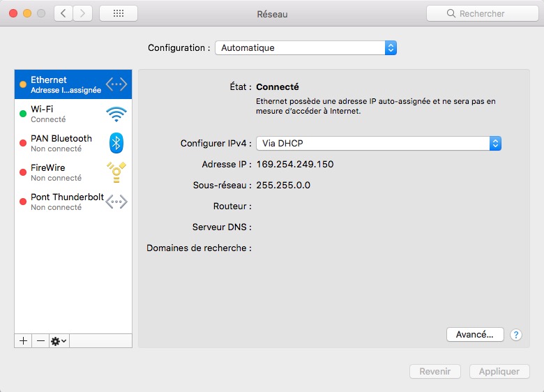 Je n'arrive pas à activer ma connexion Ethernet sur le MacBook ?