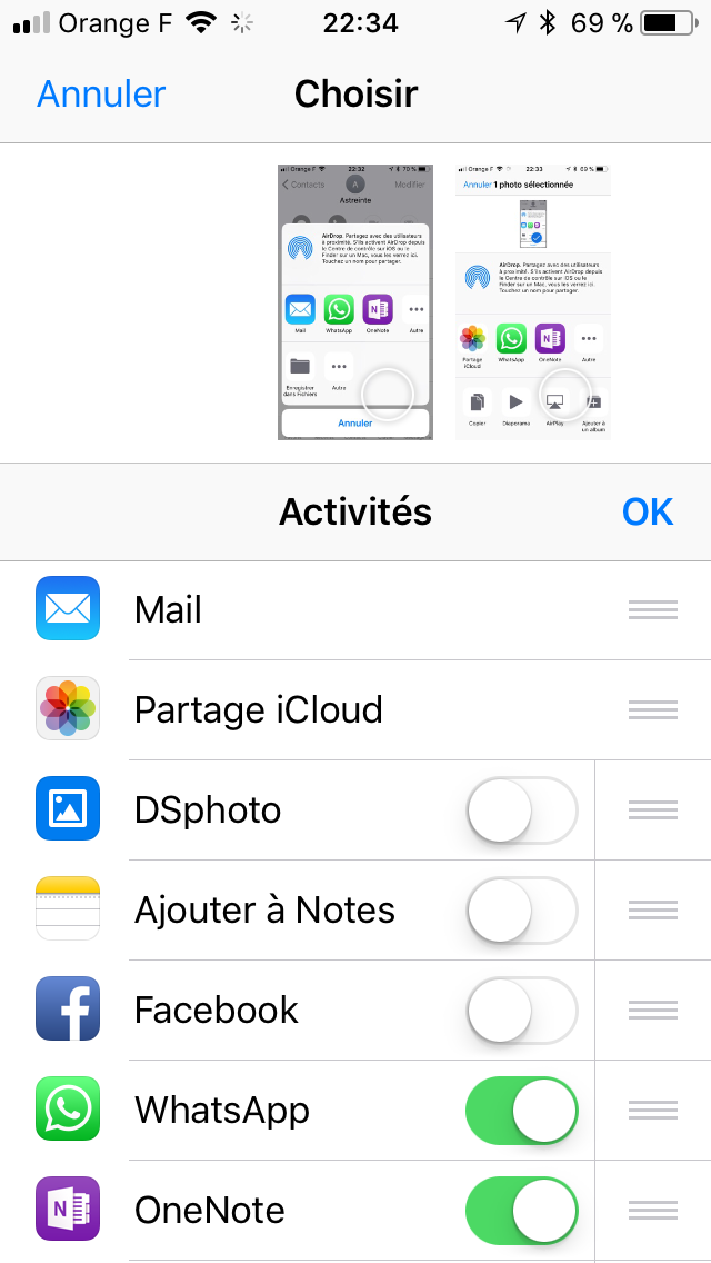 Depuis la mise à jour en IOS 11 sur mon SE impossible de récupérer l’icone Message lors d’un partage de contact ou l’envoi d’une photo.