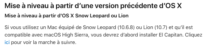 Tous les tentative de mise à jour vers Mac OS Hight Sierra se sont soldées par une message d'erreur ( Après redémarrage et vers la fin de l'installation soit après plus d'une heure de travail 😢 ...)