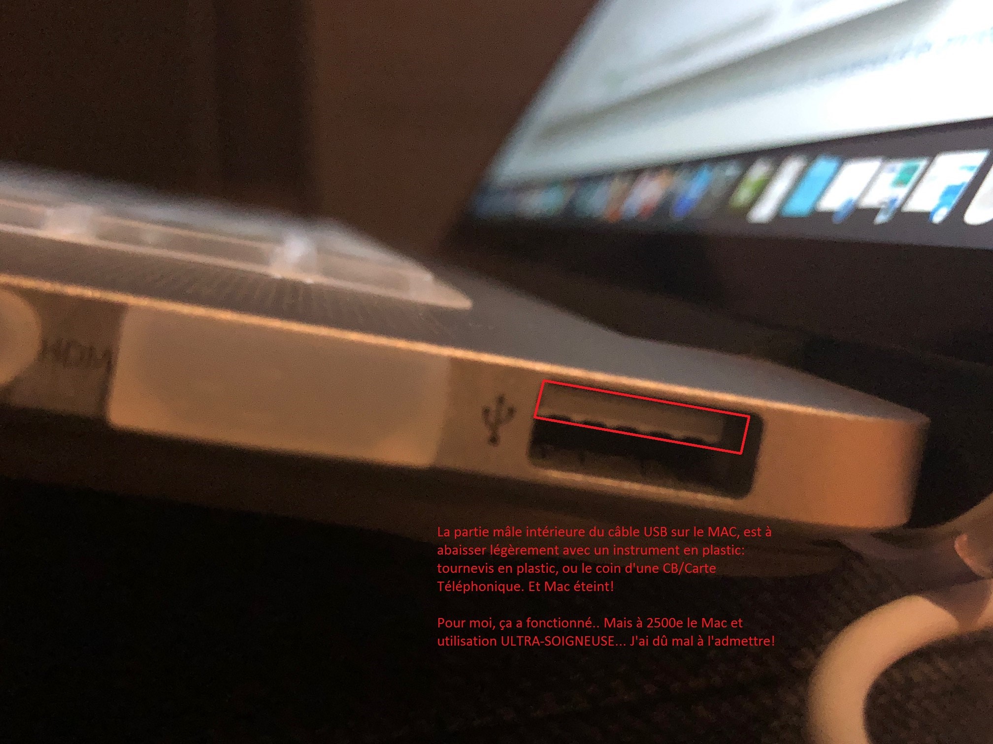 J'ai essayé de connecter mon iPhone sur les 2 ports USB de mon Macbook pro, avec plusieurs câbles lightning officiels d'Apple, ainsi que mon câble Anker (certifié MFI) mais le problème survient toujours. J'ai branché l'iPhone 6 de ma mère sur mon ordinateur, et sur celui-ci je n'ai eu aucun problème de connexion. J'ai branché mon iPhone sur l'ancien Macbook pro (2008) de mon frère et mon téléphone se chargeait sans problème.