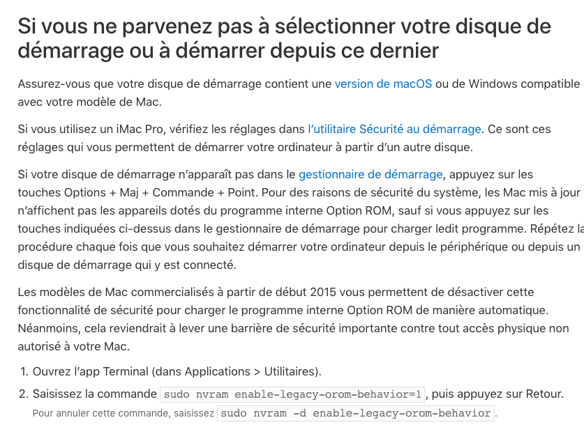 (enfoncer la touche Opt doit également entraîner l’affichage d’un dialogue demandant le mot de passe EFI)
