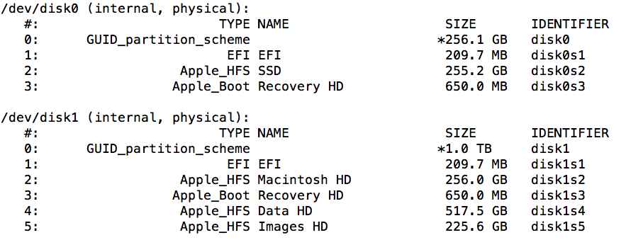 c.a.d une partition EFI et une partition Recovery HD sur votre SSD comme sur votre HDD (cette configuration est la mienne après avoir ajouté en interne dans mon Mac Mini un SSD à côté de mon disque dur).