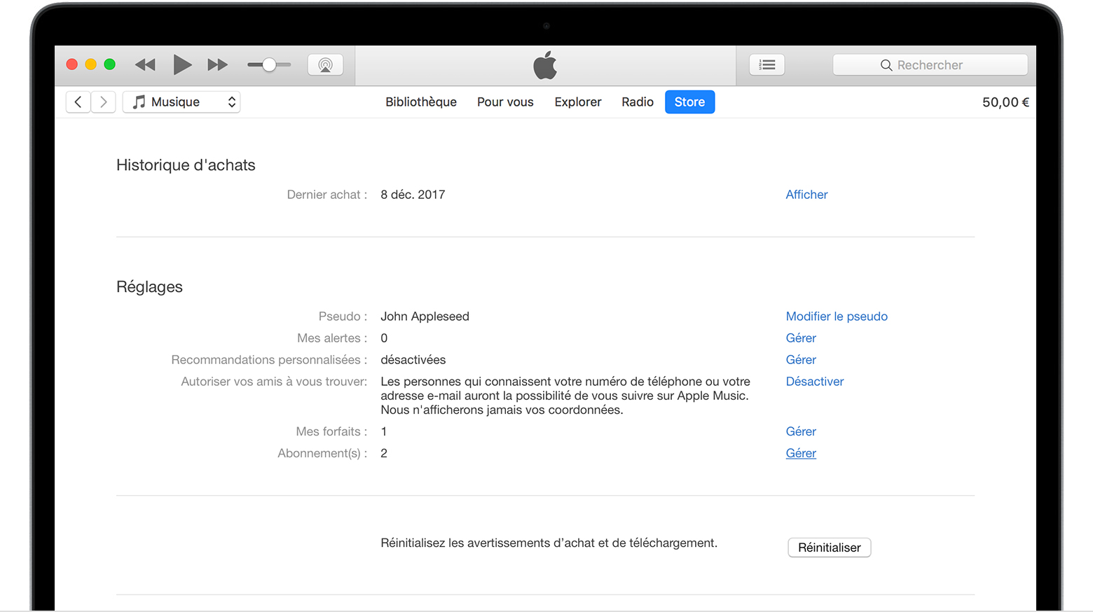- Dans la barre des menus située en haut de l’écran de votre ordinateur ou en haut de la fenêtre iTunes, sélectionnez Compte > Voir mon compte.
