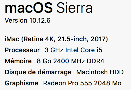 iMac, macOS Sierra (10.12.6), Ecran Retina 4K