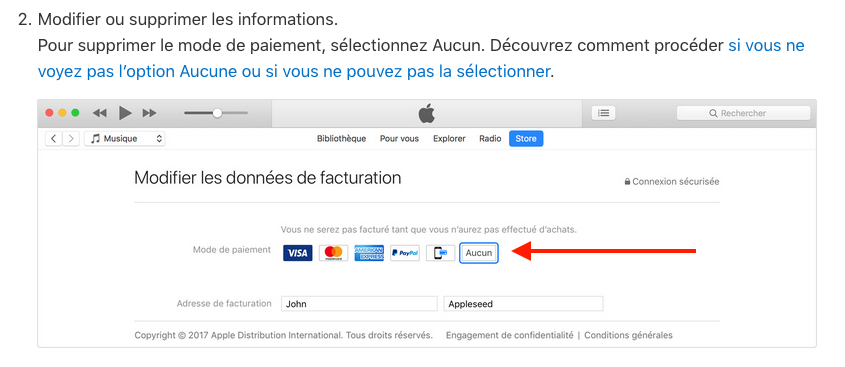 Je souhaite supprimer mes données de facturation sur Apple store.