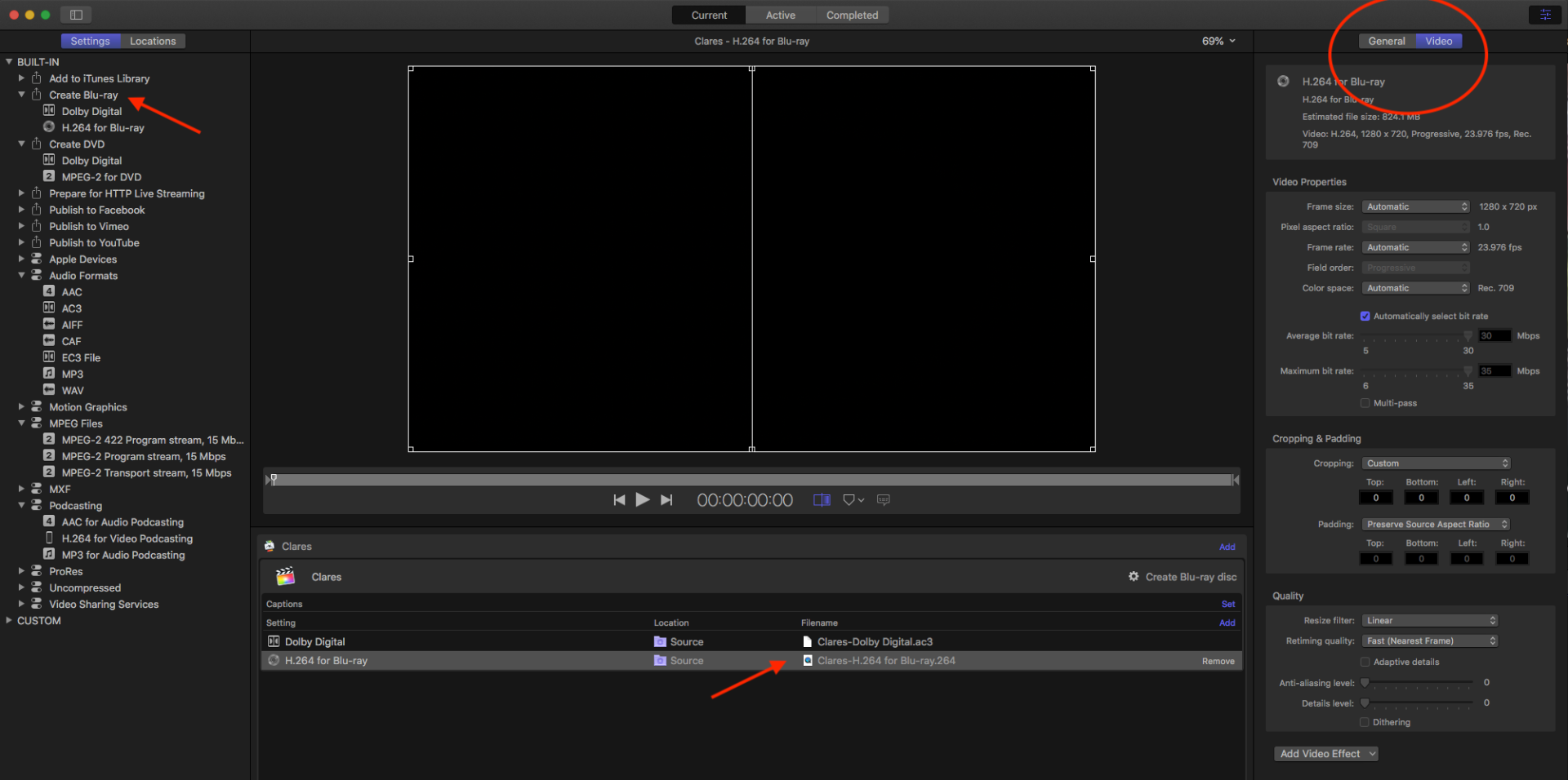 A partir de la, il va envoyer ton film monté dans compressor il va falloir lui donner un format d'export.