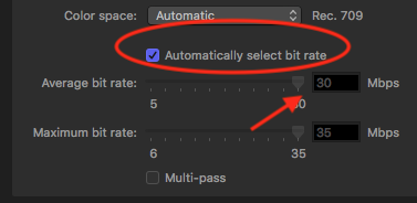 Il va ensuite falloir decocher la case pour changer le debit binaire (bit rate) qui pour le moment grise et fixé au maximum a 30 Mbps.