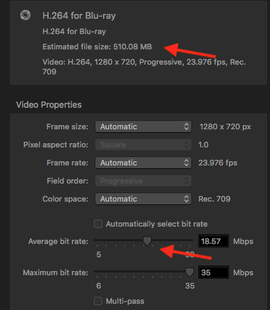 En decochant la case, la poignee devient active et tu peux changer le debit moyen et le reduire au besoin.En faisnt ca, ca va changer le taille de ton fichier en sortie\