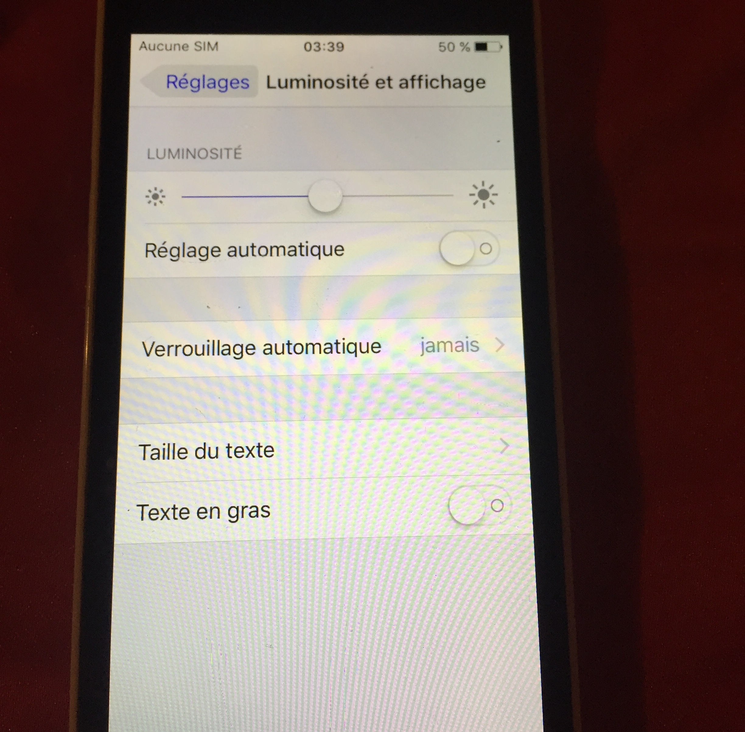 1 Réglages allez sur Luminosité et affichage