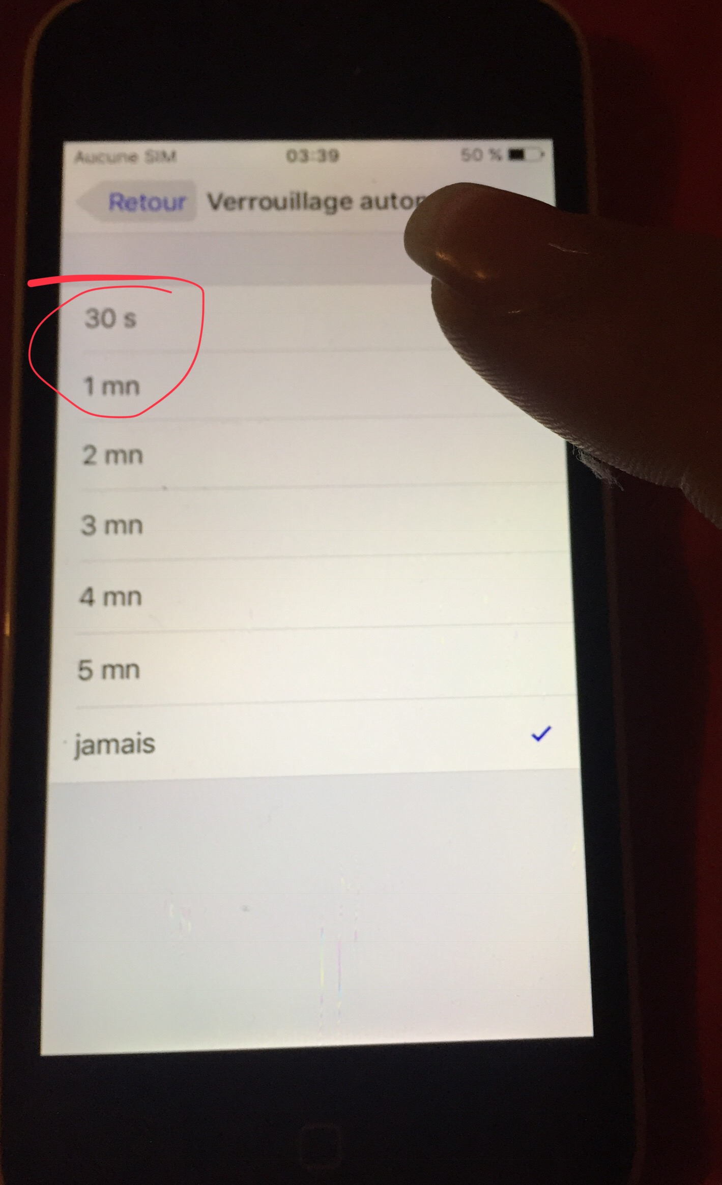 3 Just on bas vous aviez verrouillage automatique et de suite vous pouvez choisir le temps que vous conviens .. (sur tout ne pas choisir « Jamais )