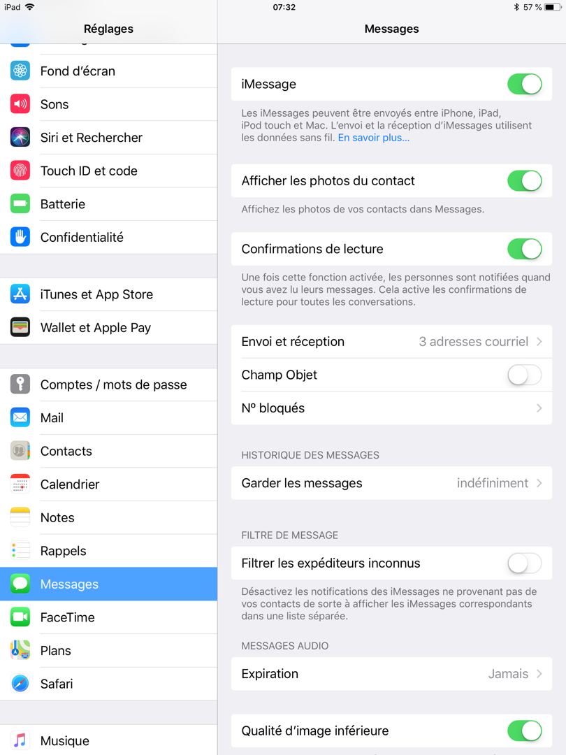Mes réglages sont pareilles pour mon iPhone / iPad
