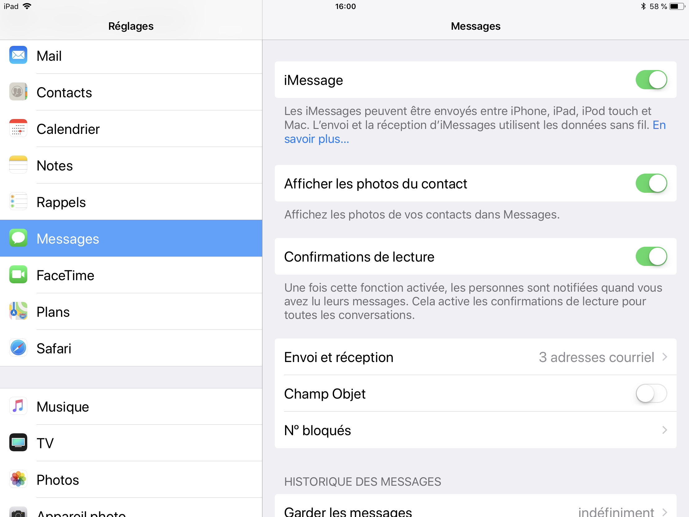 Mes réglages sont pareilles pour mon iPhone / iPad