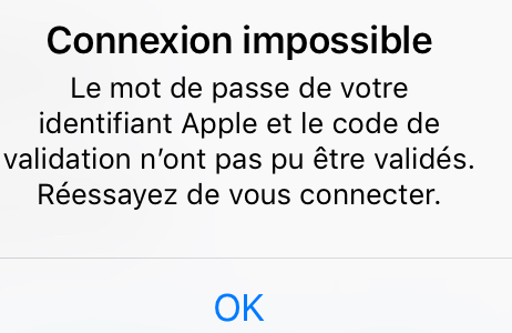 Selon les détails que vous apportez et la photo du message d'erreur (ça aide beaucoup d'ailleurs !), je pense qu'il vaut mieux se concentrer en priorité sur la raison pour laquelle vous ne recevez pas de code de validation.