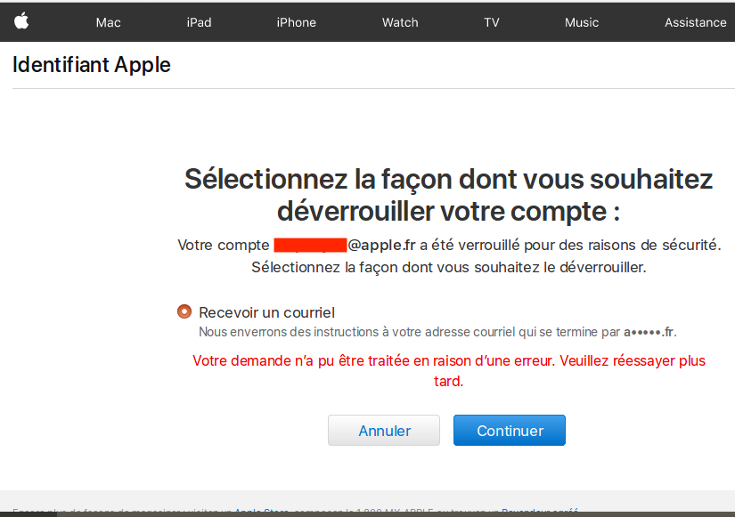 Réactivation compte Apple par mail n'a pas pu être traitée
