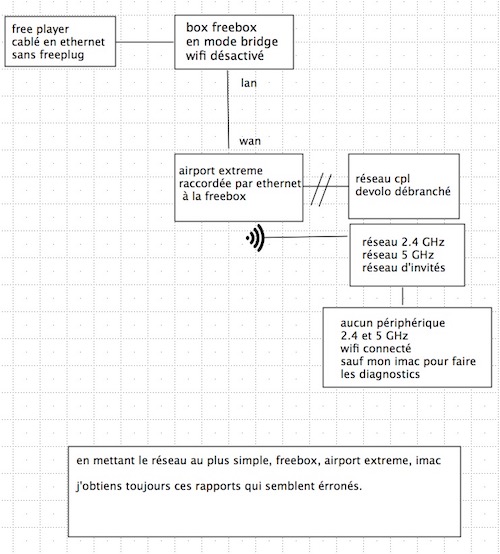 je possède une airport extreme en tant que routeur derrière une freebox en mode bridge dont le wifi est désactivé.
