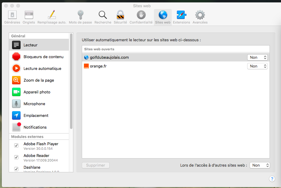Je m'explique : quand je vais dans SAFARI - Préférences - Site web.... ce site est ouvert en permanence , impossible de le supprimer.