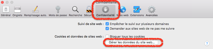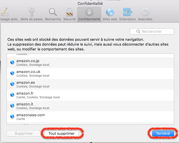 - Choisi Confidentialité / Gérer les données de sites web, Supprimer, puisTerminé