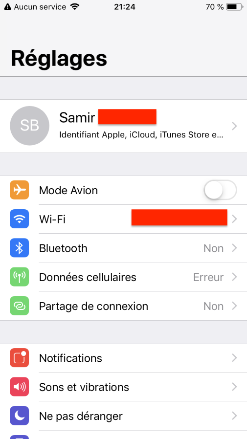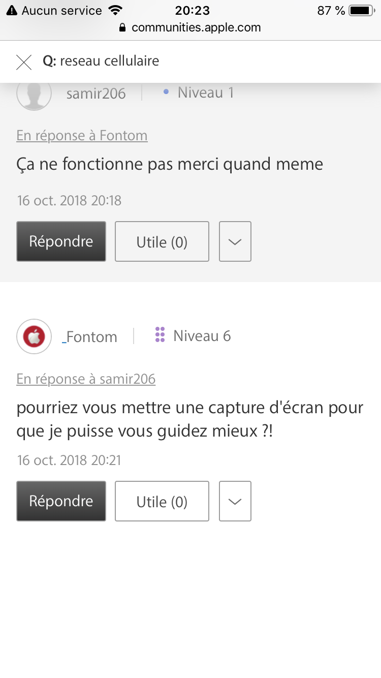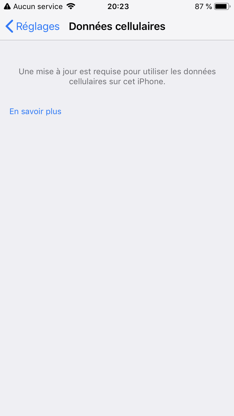 veillez suivre les procédures décrite ici : Affichage du message « Aucun service » ou « Recherche » sur votre iPhone ou iPad - Assistance Apple