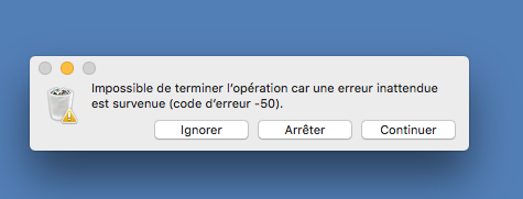Vidage de corbeille impossible code erreur -50 (El Capitan)