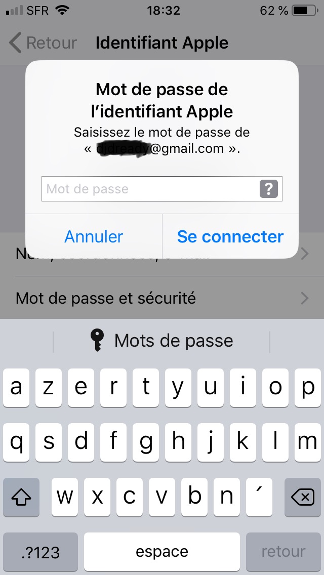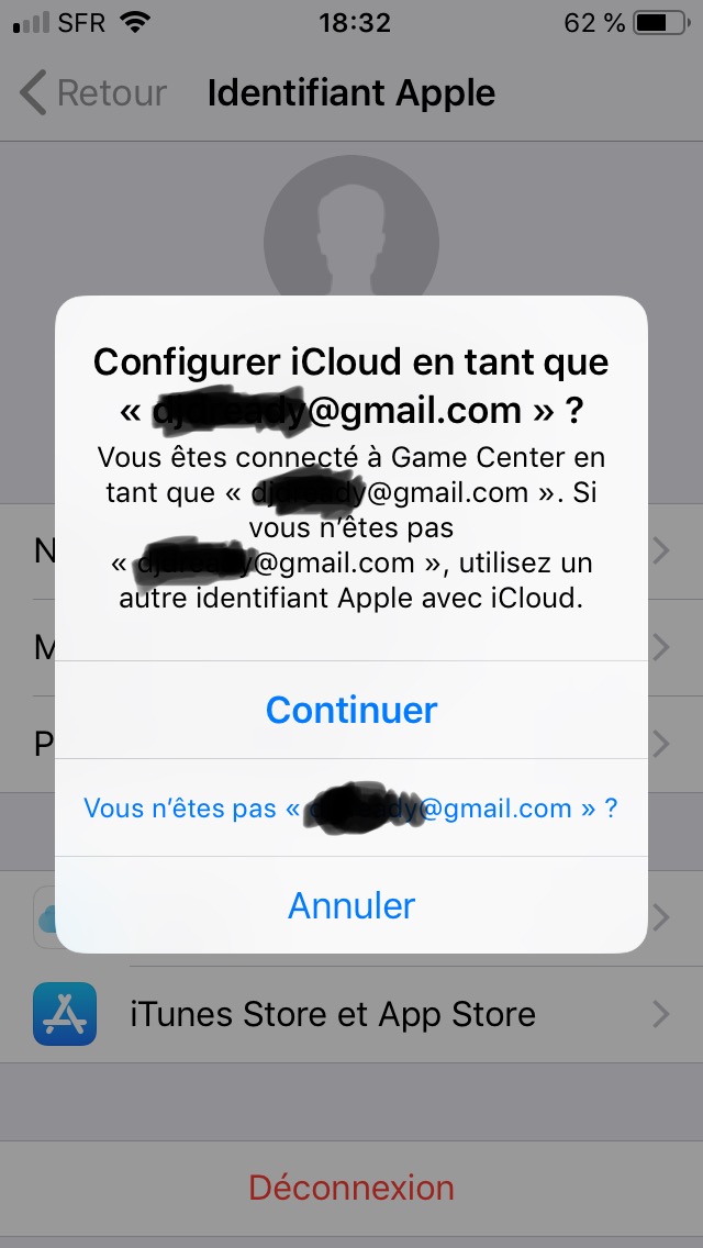 Je suis donc bloqué j'ai était sur l'application itune store il m'a demandé de me relogger ca à fonctionné direct, j'ai retrouvé mon nom et tout quand je vais dans réglage mais icloud n'est pas activé, quand j'essaie je me retrouve avec le même problème...