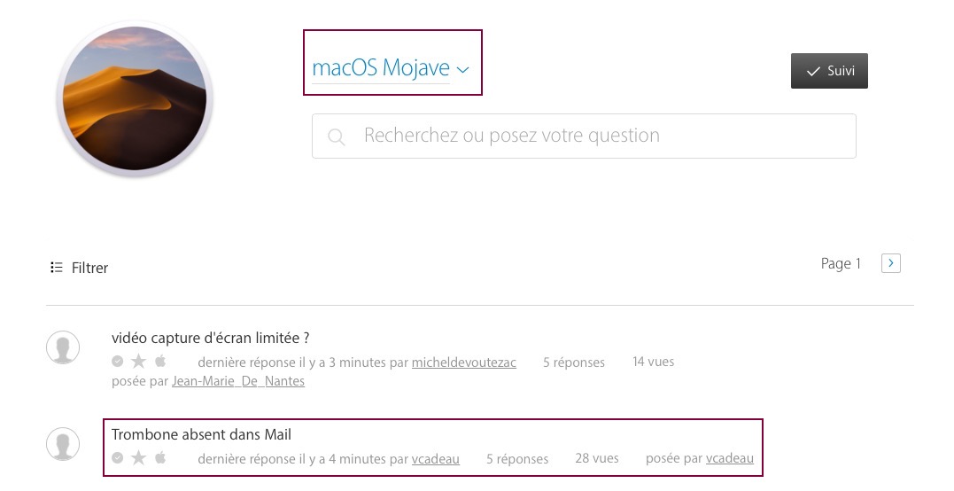 Et c'est dans la partie des discussions ayant trait à Mojave que tu as publié ta 1ère question :