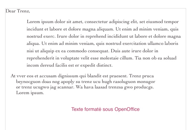 Concernant le passage de Pages à Mail, ça ne fonctionne effectivement pas mais je viens de tester un texte avec divers retraits avant et après le texte et également retrait de 1ère ligne effectué avec OpenOffice et ça passe très bien.