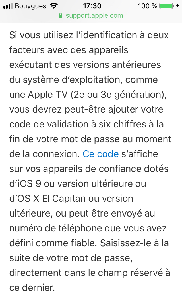 Voilà j Ai une appel tv ancienne génération plus moyen de rentrer mon code iTunes je le rentreplus le mors de passe À 6 chiffres de verification et connexion impossible ??!!!