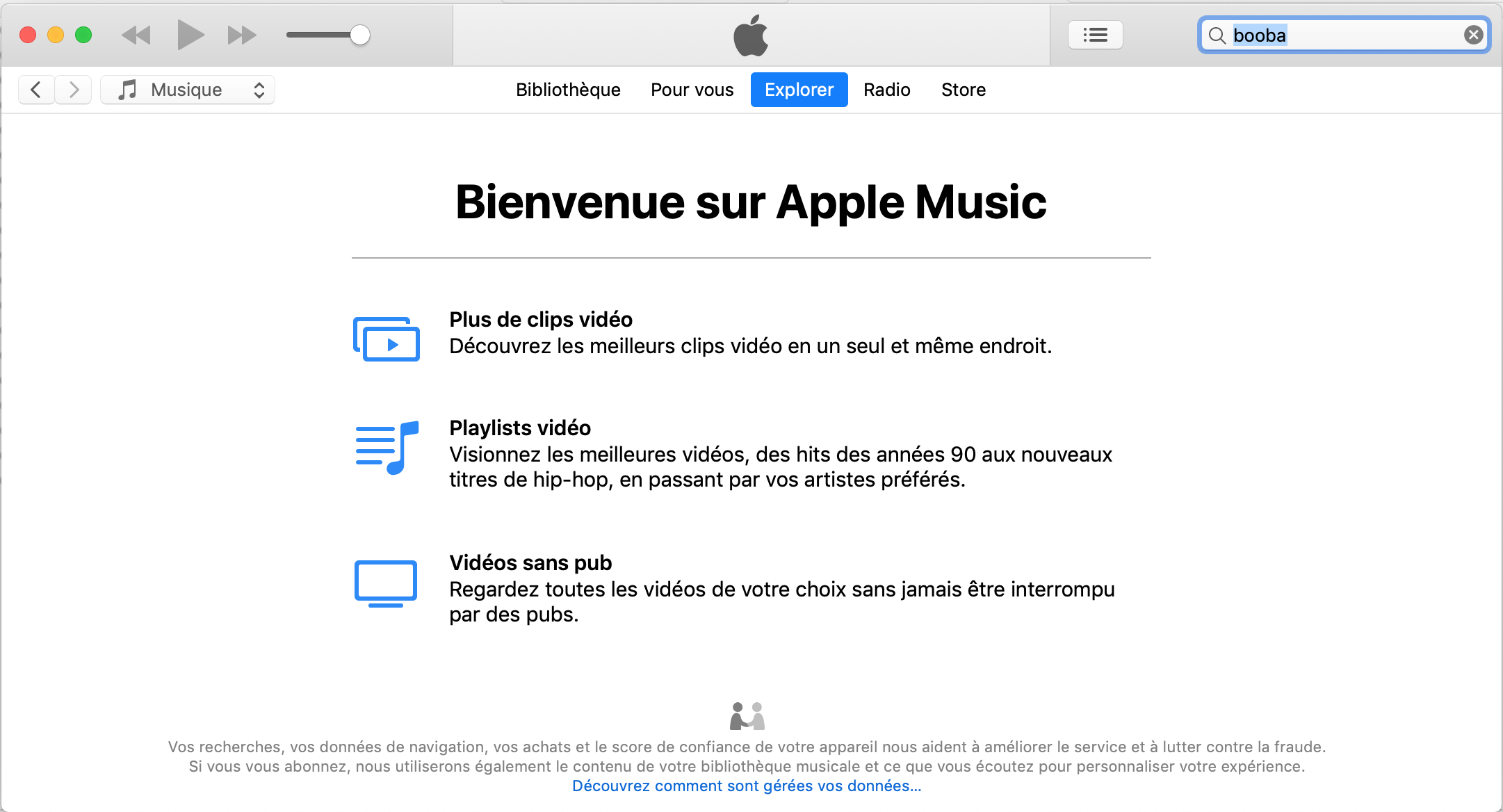 Bonjour, lorsque j'ouvre mon Itunes sur Mac book pro retina late 2013 depuis que j'ai fais la maj Mojave, mon Itunes m'affiche toujours le même message que ce soit dans l'onglet "Pour vous" ou "Explorer" : "Bienvenue sur Apple Music"