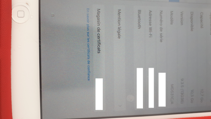 ipad version 9.3.5(13g36) modelMD531C/A