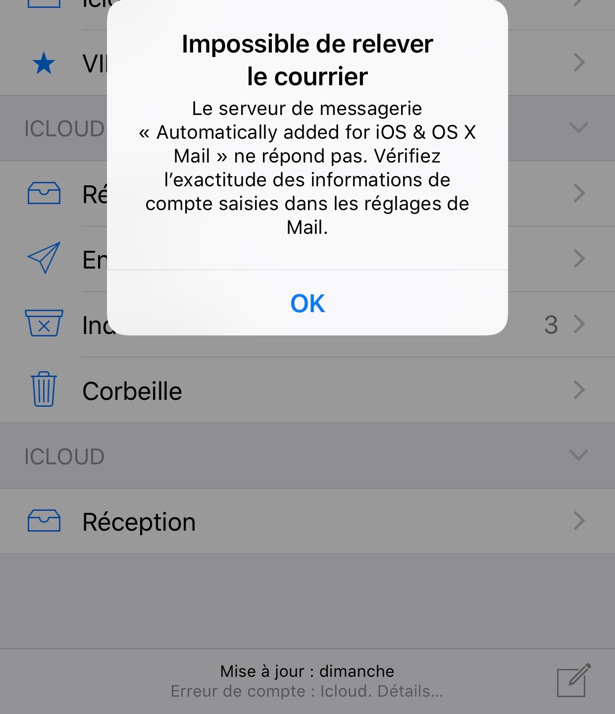 Impossible de relever le courrier car le server de messagerie ne répond pas