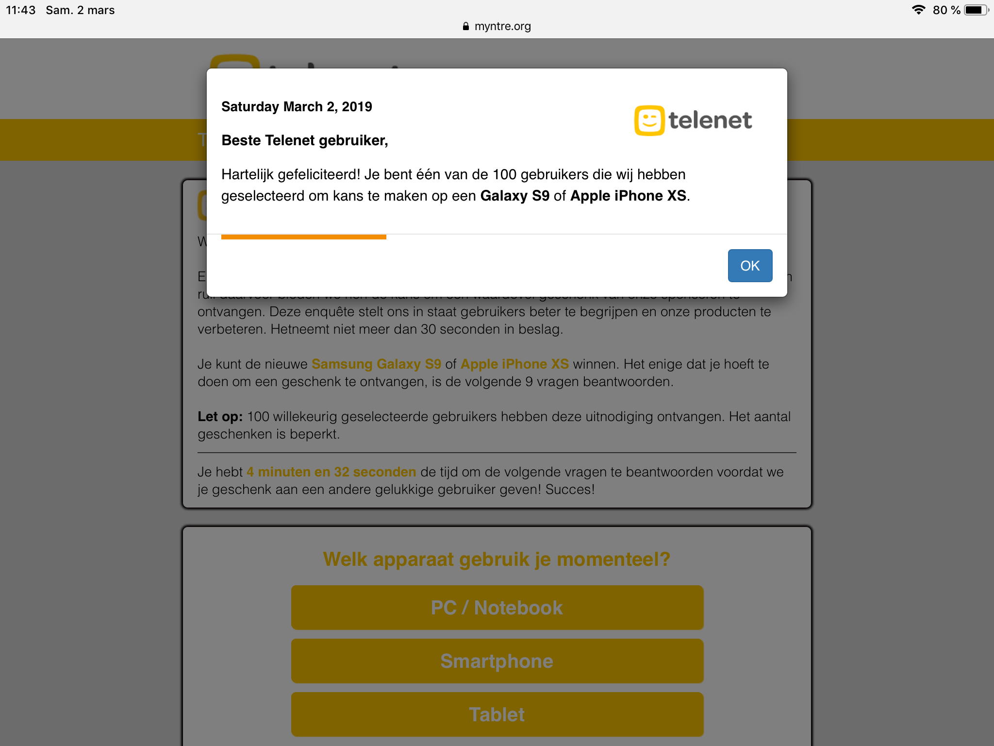 Bonsoir, lorsque je consulte le site seconde main une fenêtre de telenet s’ouvre et me propose un iPhone X à un prix très bas . Cette fenêtre s’ouvre intempestivement. Que Faire?