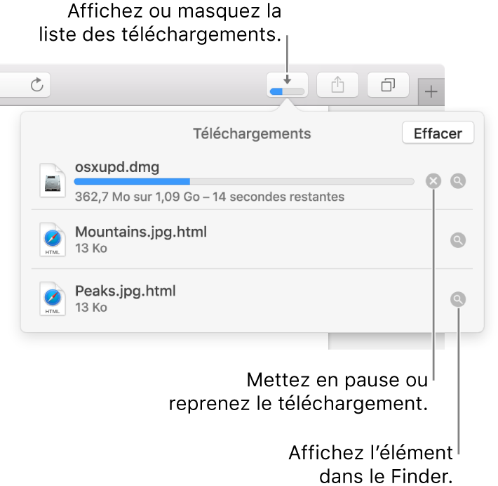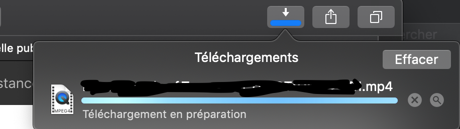 Lorsque je télécharge un Fichier avec safari, la progression et la vitesse de téléchargement n'apparaissent plus sous le bouton de téléchargement dans le coin droit de la fenêtre de Safari. De plus pour obtenir une information sous le bouton de téléchargement je dois utiliser l'option " Télécharger le fichier lié". Ensuite En cliquant sur le bouton de téléchargement, la seule information affichée sous le nom du fichier est "Téléchargement en Préparation".