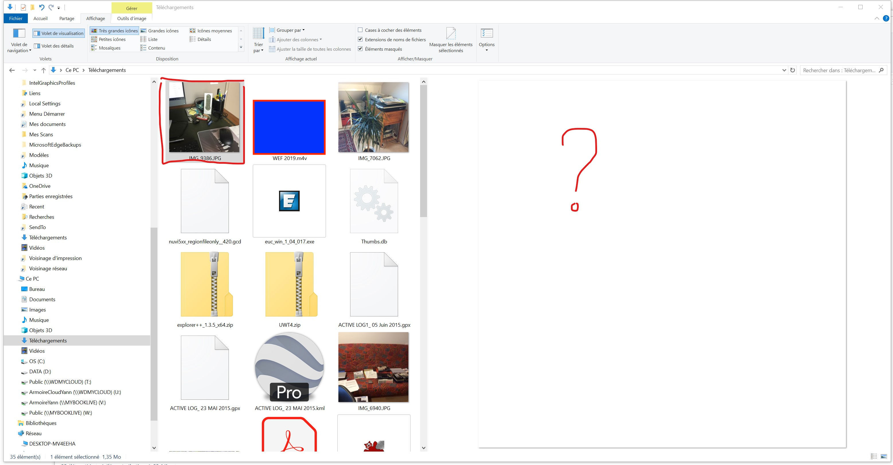 Ce qui est curieux c'est que quand je démarre le PC (ou relance Explorer) je peux voir la visualisation dans le volet mais uniquement une seule fois car si je reviens sur la photo j'ai le carré blanc. Si je modifie la photo en 2247x2447 par exemple ou tout autre modif (rognage etc..) elle devient comme les autres et s'affiche correctement.
