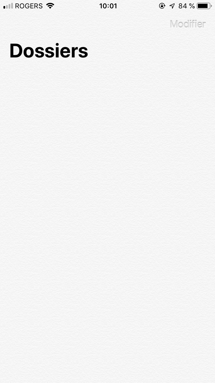 Comment puis-je écrire des notes lorsque celle-ci reste sur la page blanche écrit dans le haut « dossiers »?