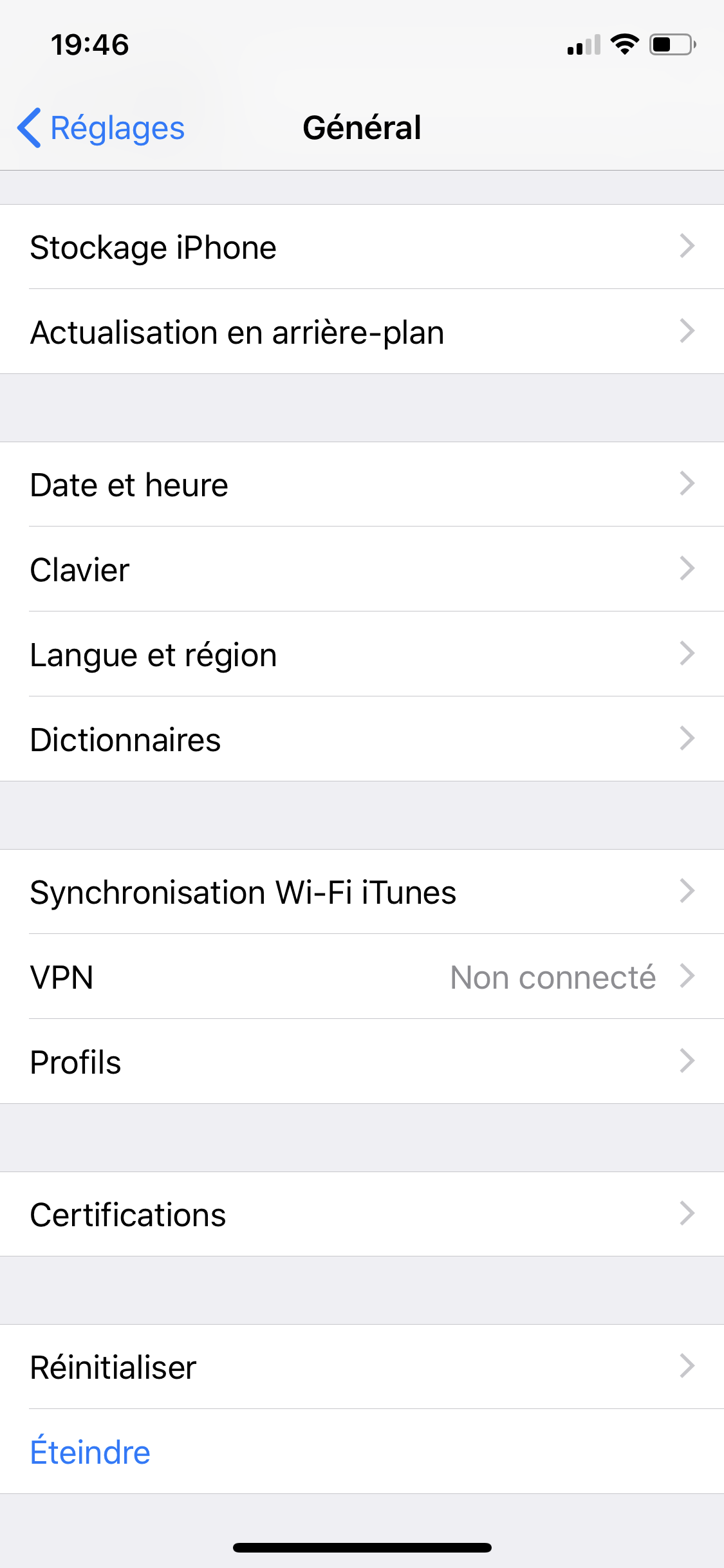 RIEN ! Ensuite après réflexion, j’ai installé plusieurs antivirus ( Avast, Mcfee, ... ) mais n’ont rien détecté... puis je me suis rappelé que l’on pouvait réinitialisé tout les réglages alors c’est ce que j’ai fait mais, une fois le redémarrage fini, je vais dans Réglages > Général et je vois que la section « Profils » y est encore ! Mais des que je vais sur d’autre paramètre et que je reviens, il disparaît ! Et à chaque fois que je ferme l’application et que je la relance, il réapparaît ! Pour re disparaître une fois que je quitte la section générale. Et ça sur tout les appareils qui était précédemment connecté sur ce compte Apple. Mais il n’y a eu que mon iPhone qui a ce « Ono » d’installer.