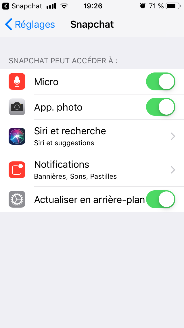 bonjour je narrive pas a mettre comme quoi snapchat puisse accer a pa galerie pareil pour instagram qui peut maider sv