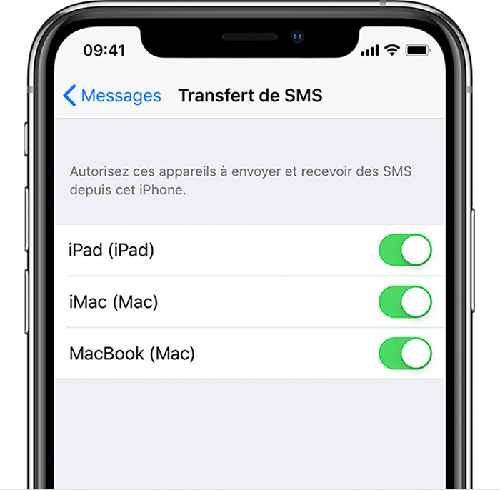 source : Transfert de SMS sur votre iPhone - Assistance Apple