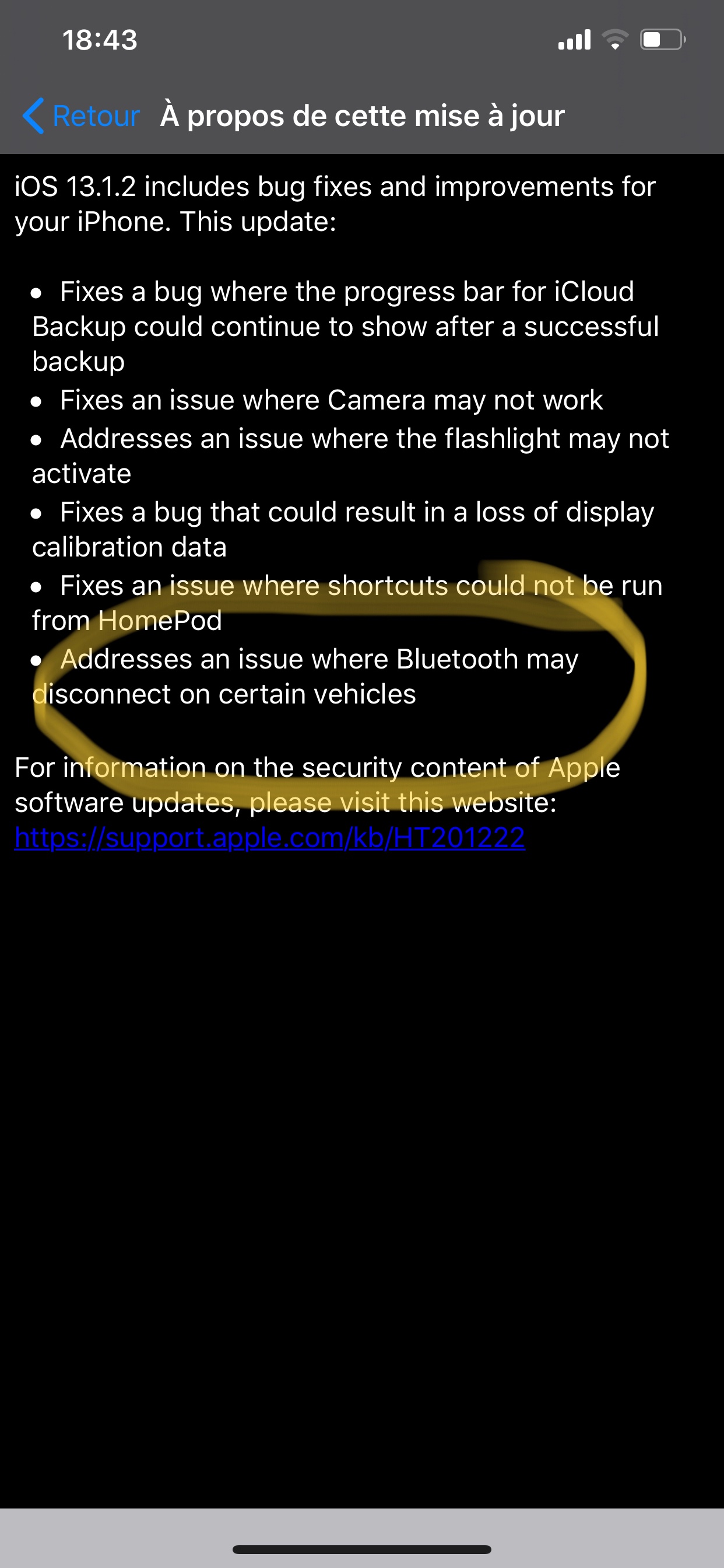 Et quand on met le téléphone en CarPlay ça fonctionne sauf que les coups de téléphone passent dans le téléphone lui-même régulièrement, seul moyen de passer le coup de fil en main libre : déconnecter le téléphone comme ça il passe en bluetooth mais le problème de déco bluetooth peut se reproduire! Bref, un cercle sans fin...