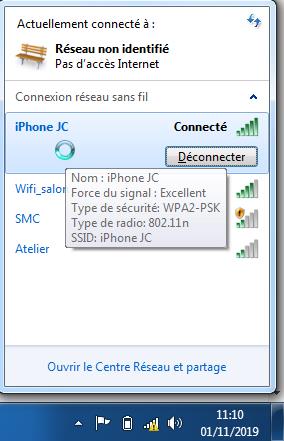 De plus, j’ai fait un partage de connexion de l’iPhone a un autre iPhone et là cela fonctionne.