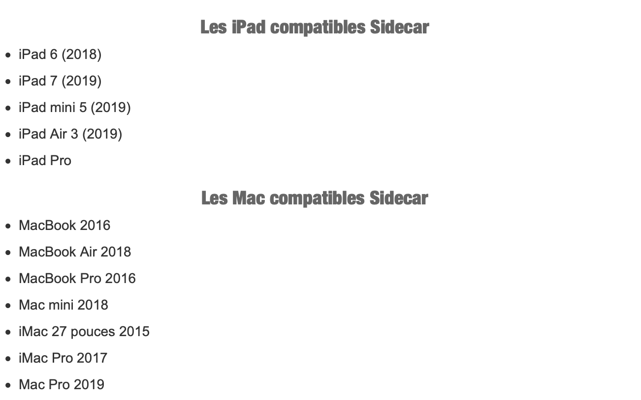 Je cherche à utiliser "Sidecar" pour connecter l'écran de mon MacBookPro mi-2015 à mon iPad Pro 12.9 pouces 2ème génération sous iOs 13.1.2