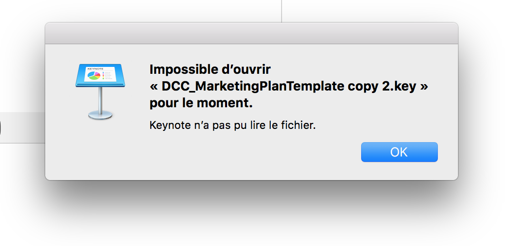 Keynote n’a pas pu lire le fichier